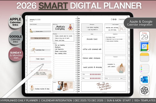 2026 Digital Planner | GoodNotes Planner With Daily, Weekly & Monthly Planner | SMART Apple, ChatGPT, Google Integration links (Mono)