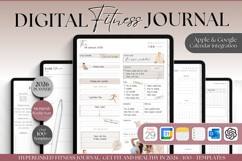 2026 Digital FITNESS planner, GoodNotes Fitness Planner, Fitness Journal, Weight Loss Tracker, iPad Workout Planner, Wellness Template (Mono)