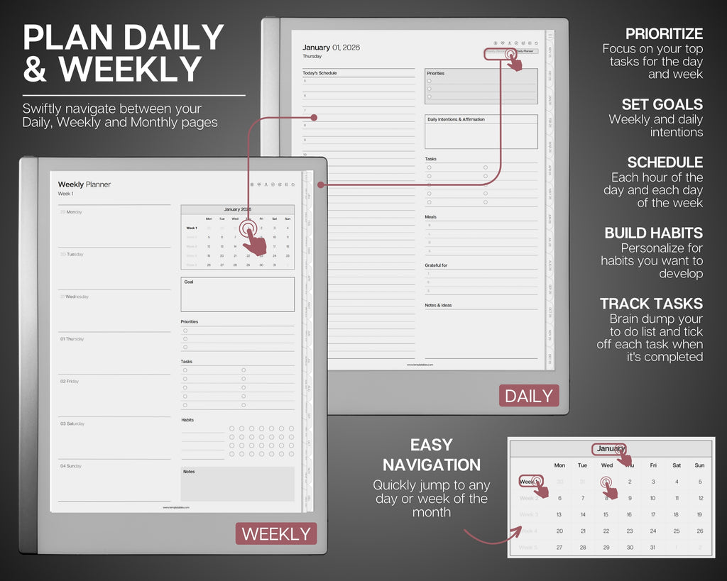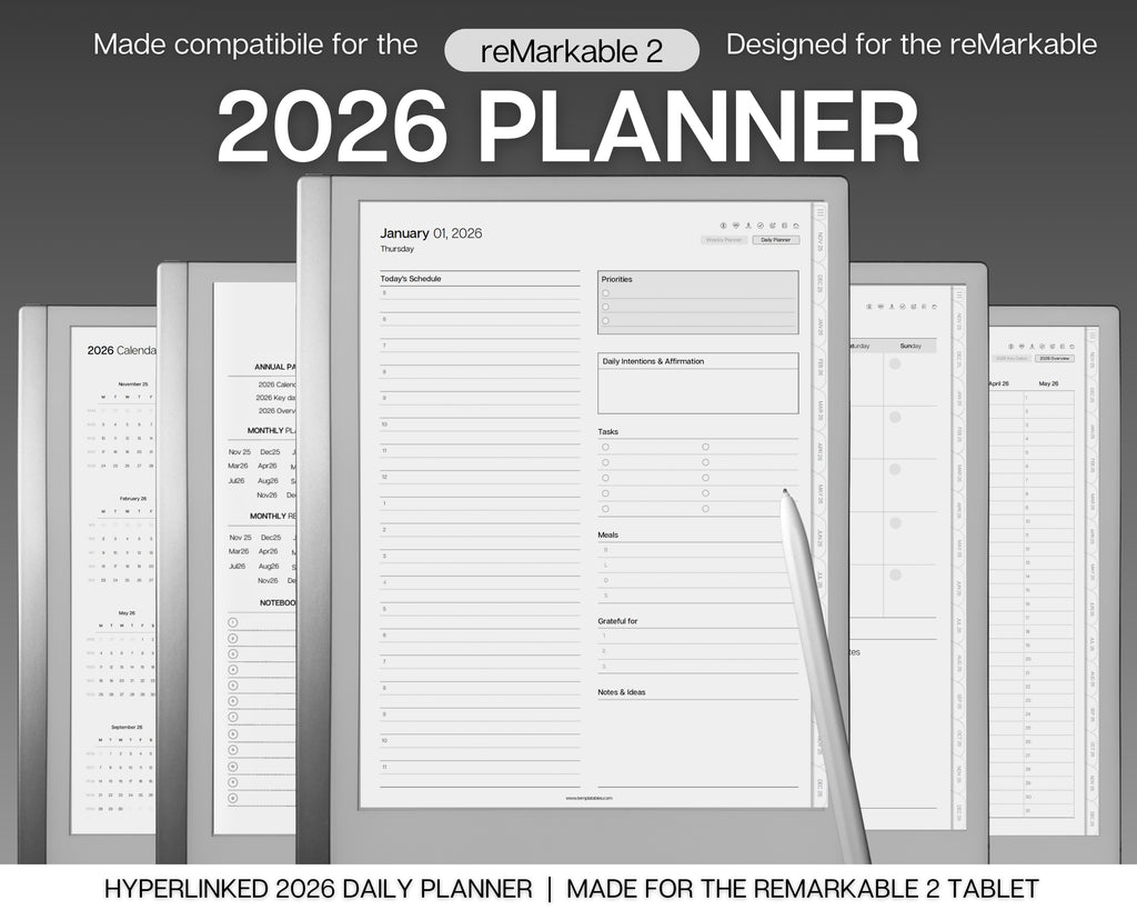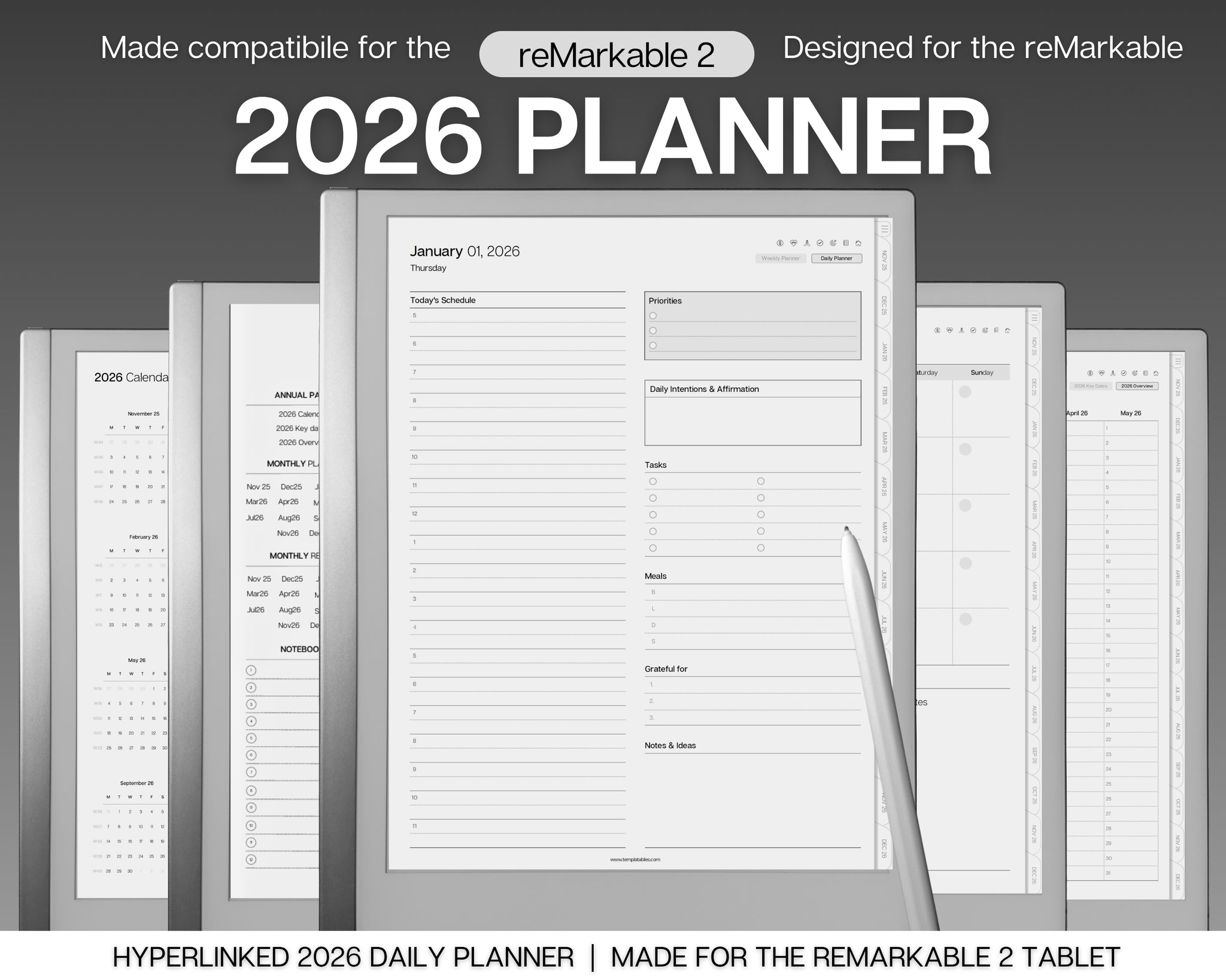 2026 Daily Planner for the reMarkable 2 - Your ultimate tool for staying organized, productive and focused.