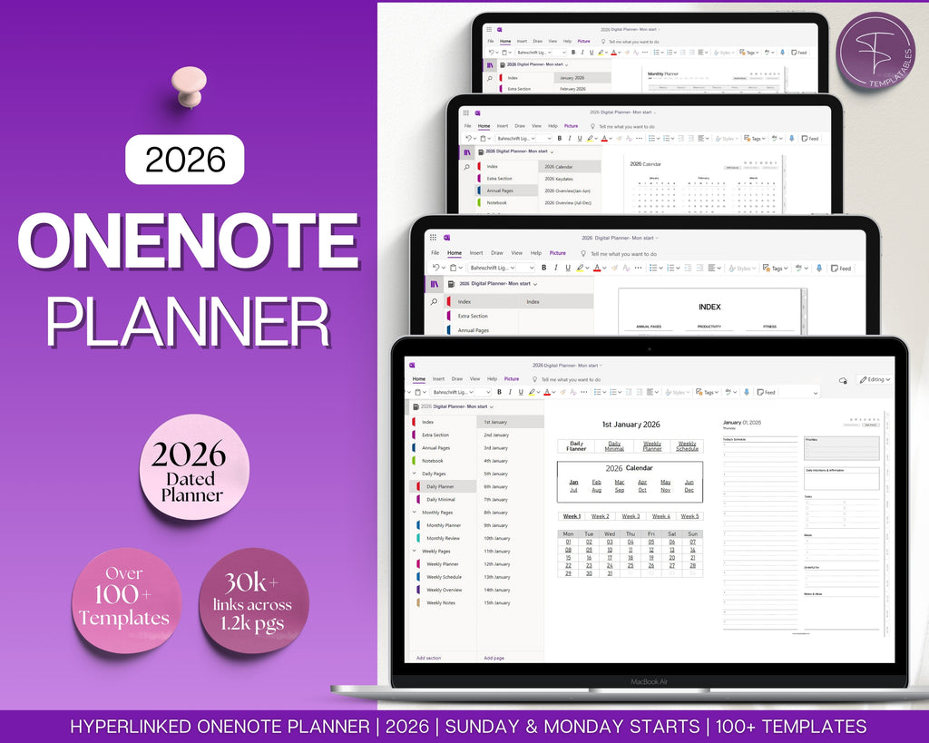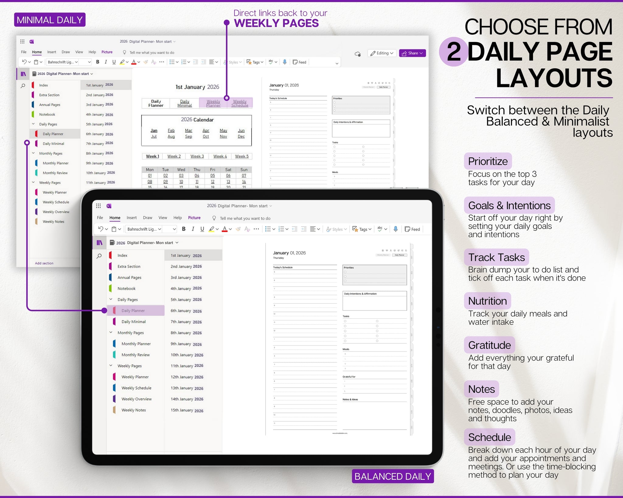 2026 OneNote Digital Planner | OneNote Template for Daily, Weekly & Monthly Planning | Minimalist