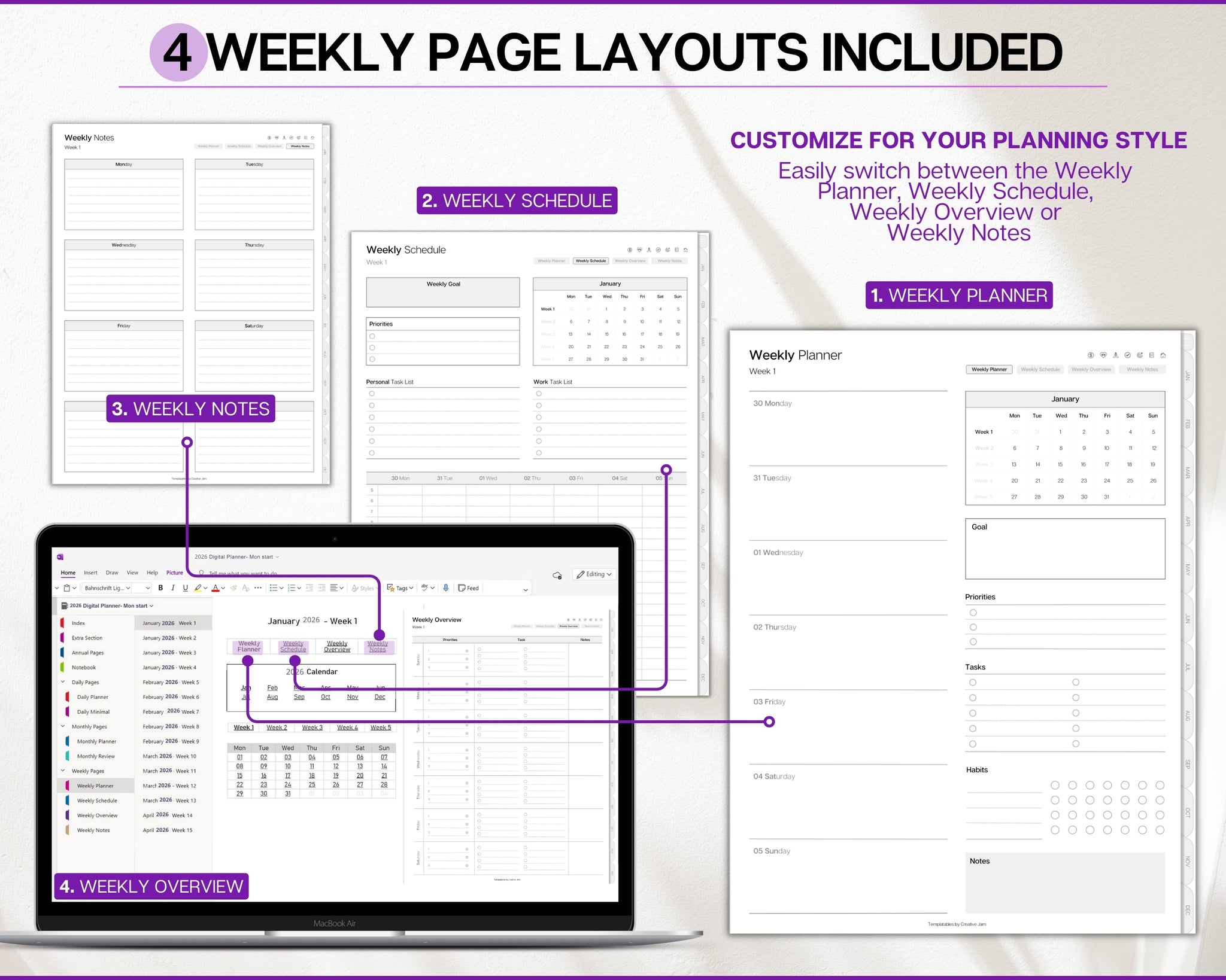✔ Choose your own planning style: 2 daily and 4 different weekly layouts included