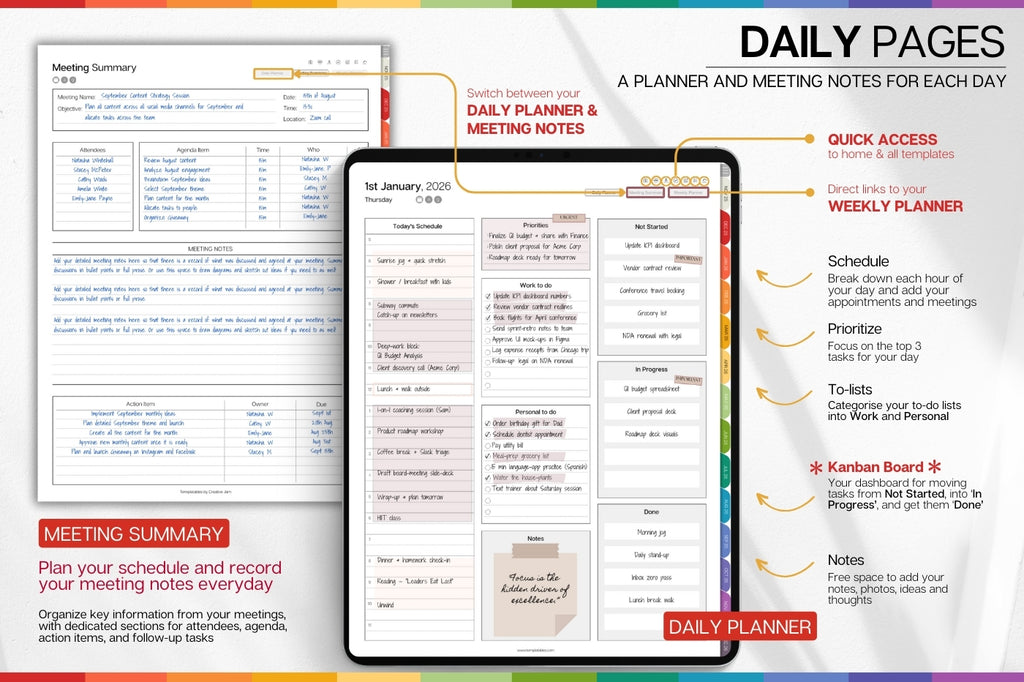 ✅ Plan, schedule and organize each day of the week and month with this hyperlinked digital daily planner, including over 700 pages, 60+ templates, 10 Notebooks and 40 notes templates for 2026 ✅
