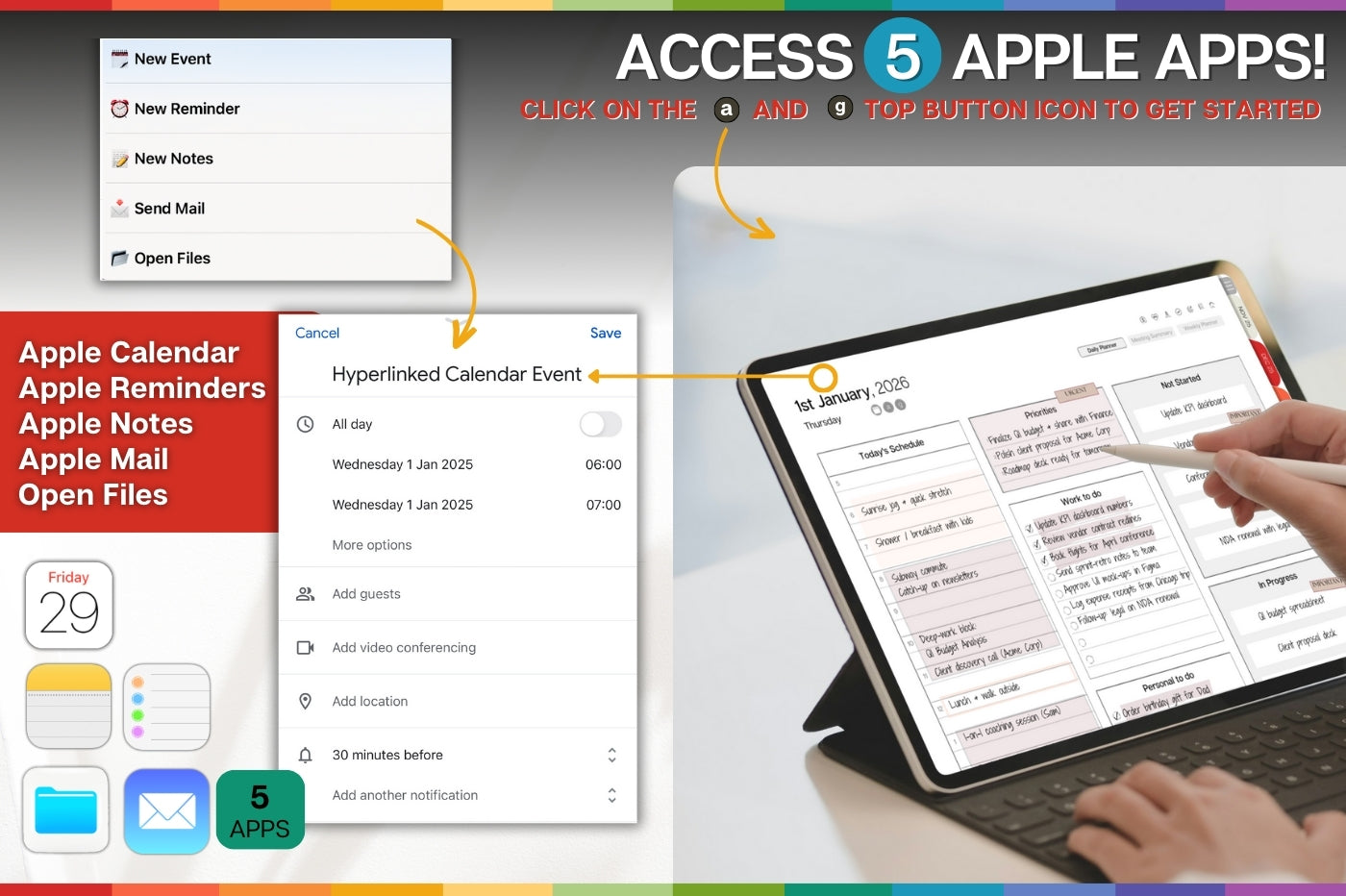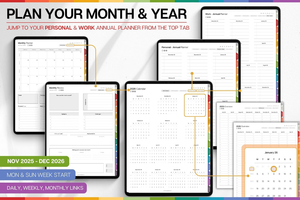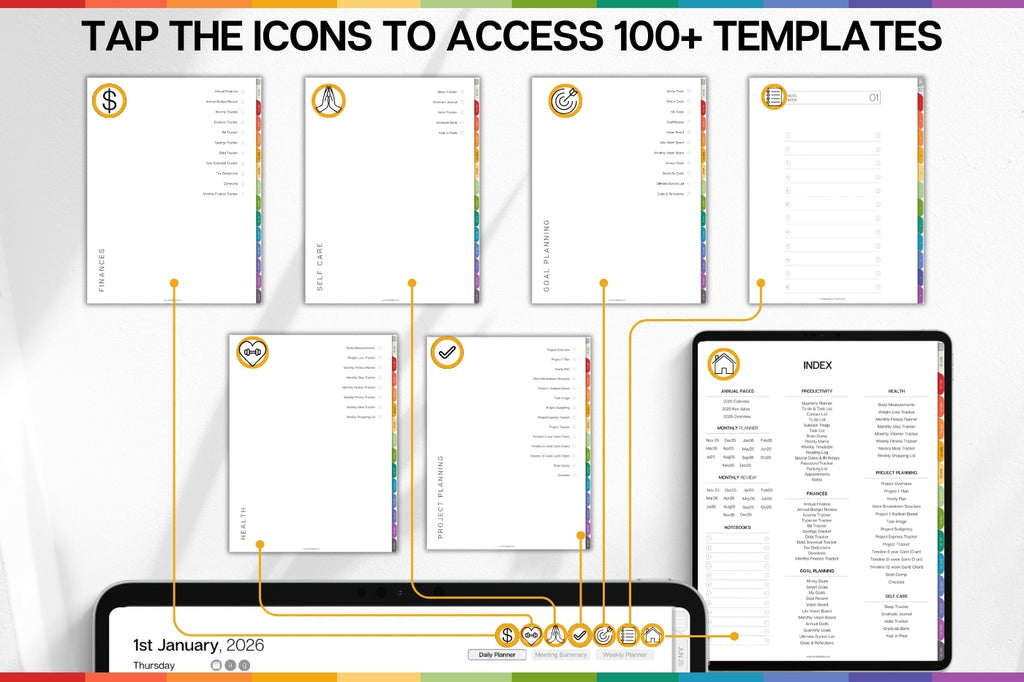PROFESSIONAL'S Digital Planner, 2026 Daily Weekly, Monthly Planner, GoodNotes Planner, Undated Life Planner, iPad, SMART Apple links | COLORFUL
