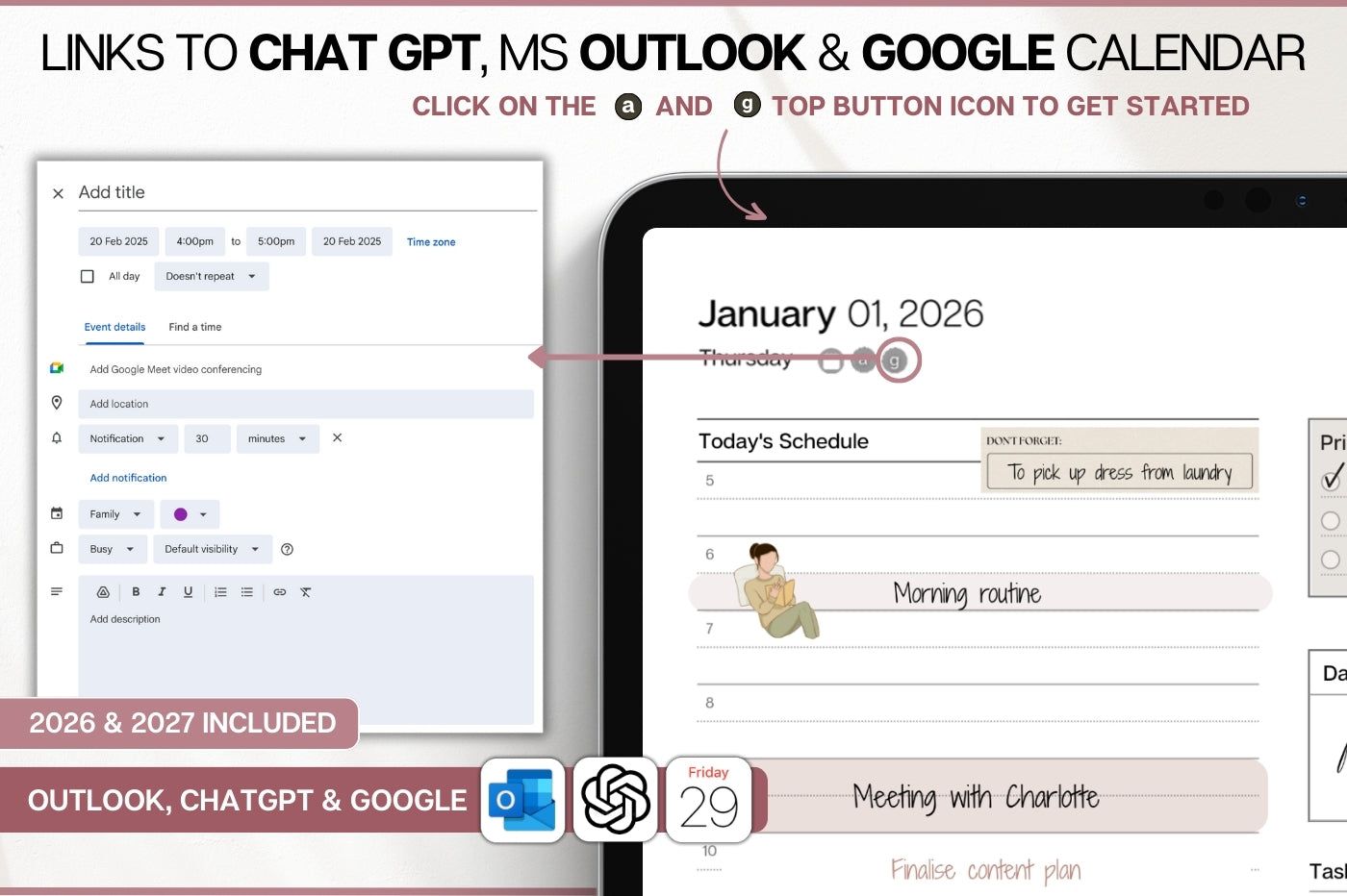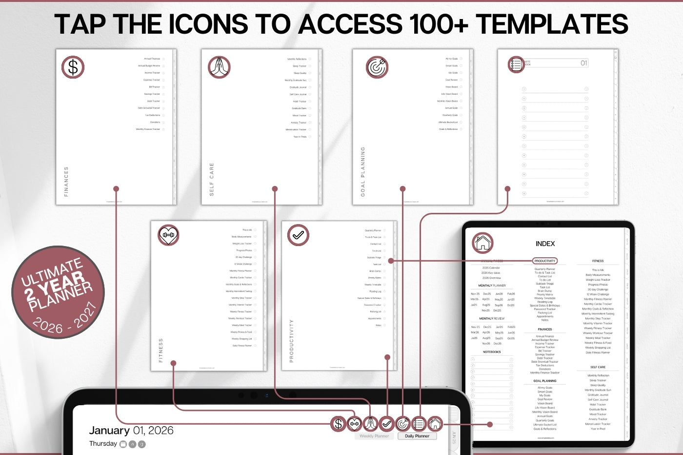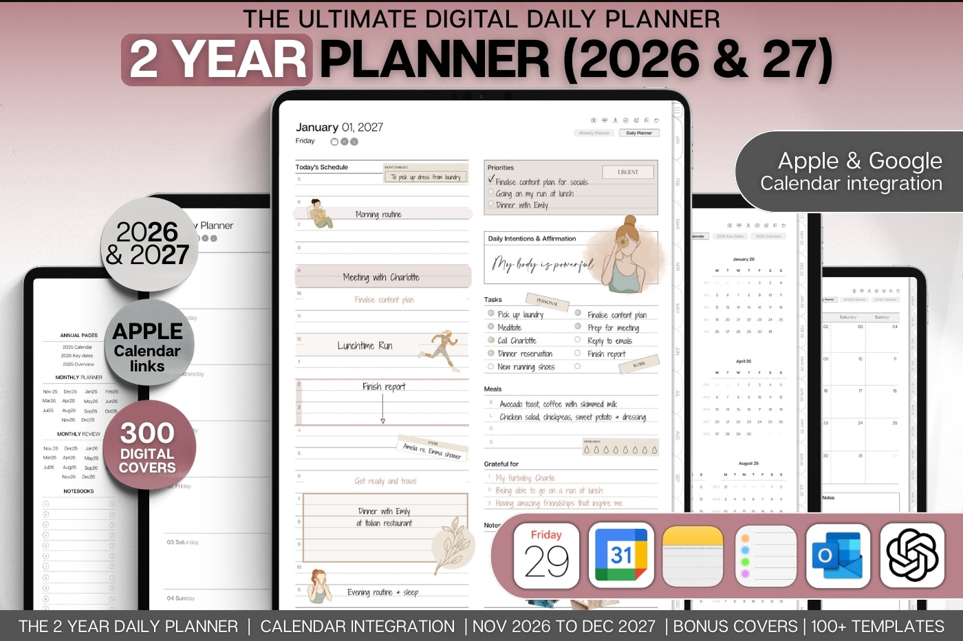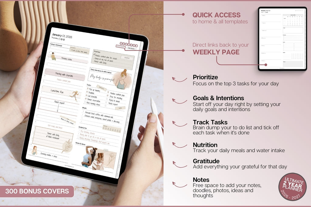 2ļøāƒ£ Two years in one! Your ultimate daily planner for 2026 & 2027 = double the value! šŸ”— Smart Apple & Google Integration also included