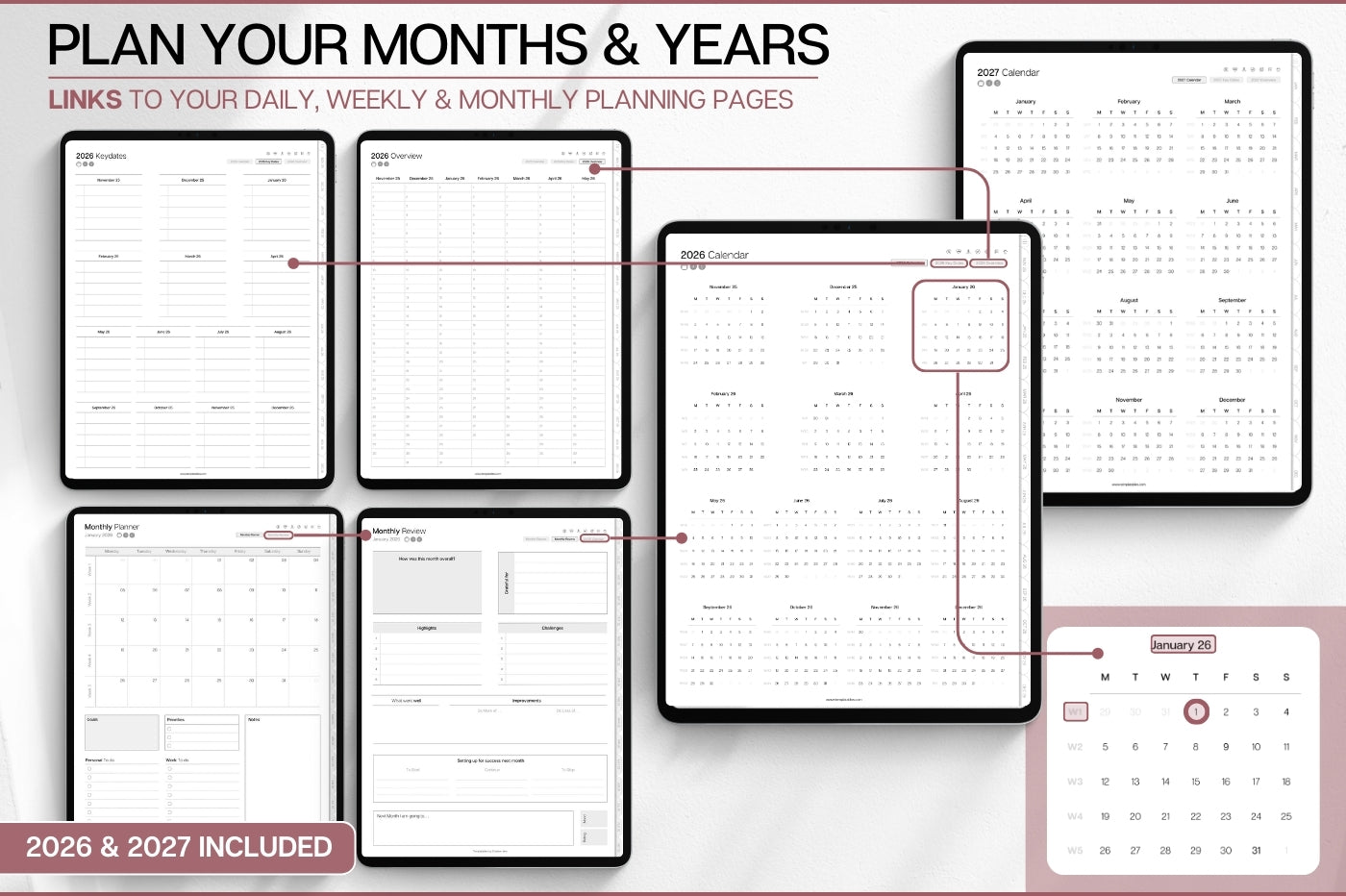 The 2 YEAR Digital Planner (2026 & 2027). MINIMALIST Daily Weekly, Monthly Planner & Life Planner. Ideal for use on Goodnotes and iPad. Smart Apple Links