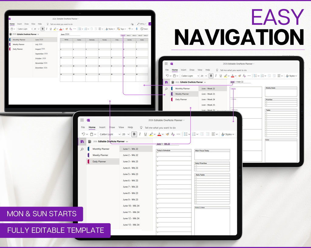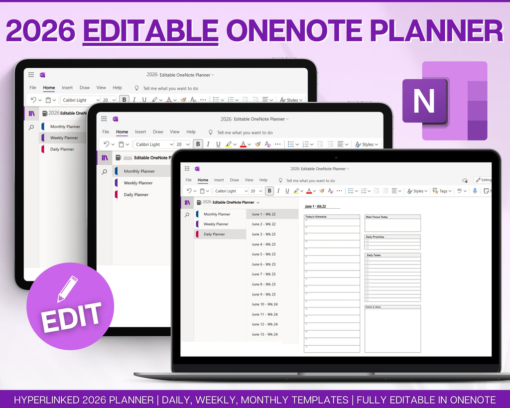 EDITABLE OneNote 2026 Digital Planner - The ultimate tool to elevate your life, your productivity and find balance!