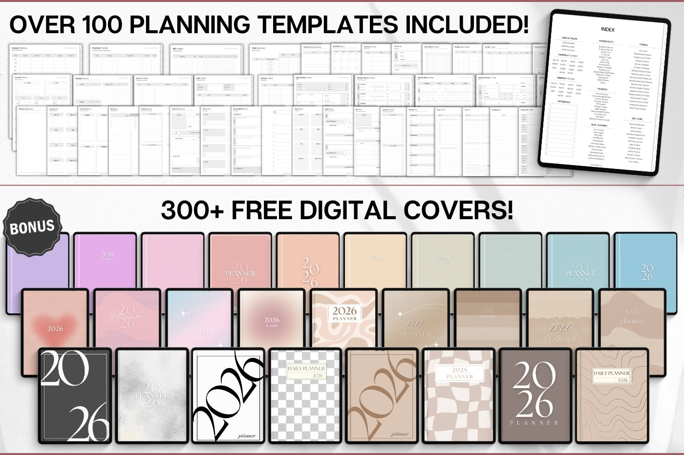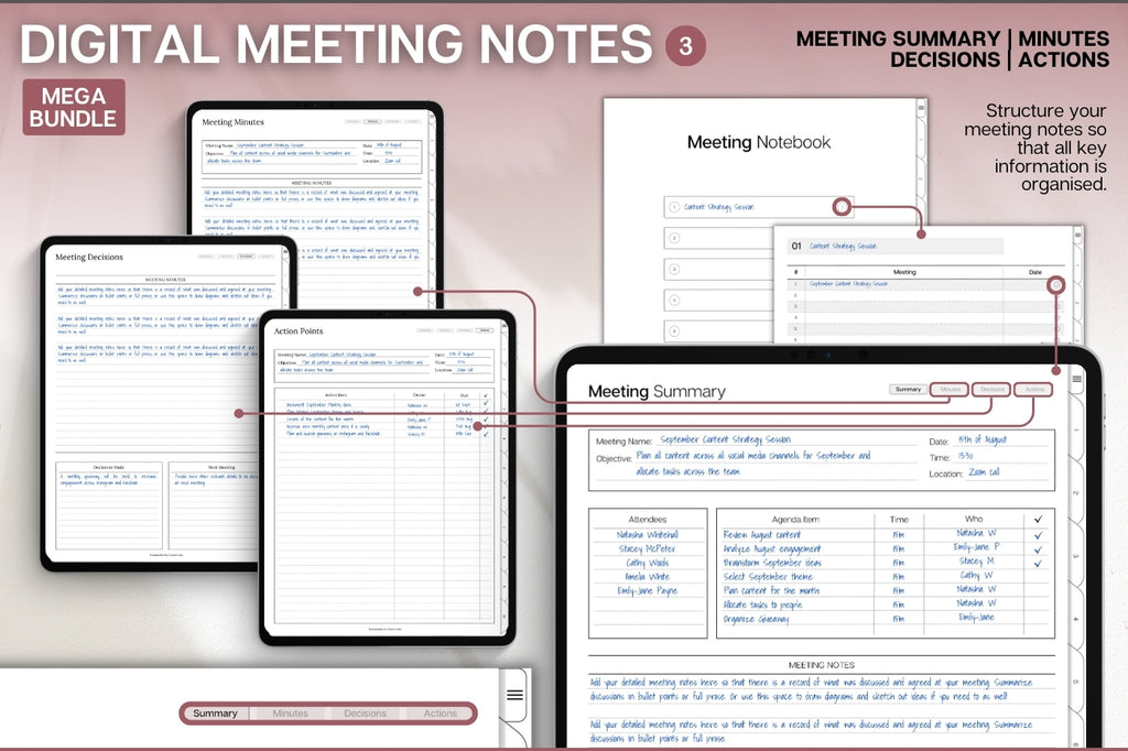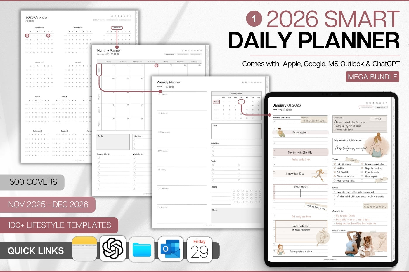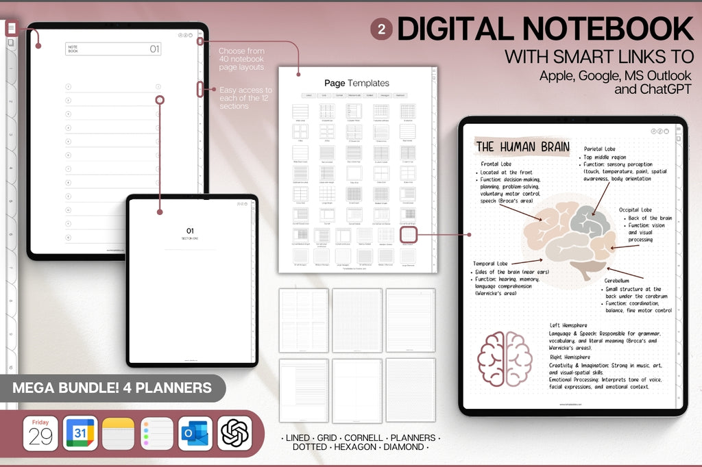 MEGA Bundle including 4️⃣ digital planners in one pack: Smart 2026 Planner, Smart Notebook, Meeting Notes & To Do List