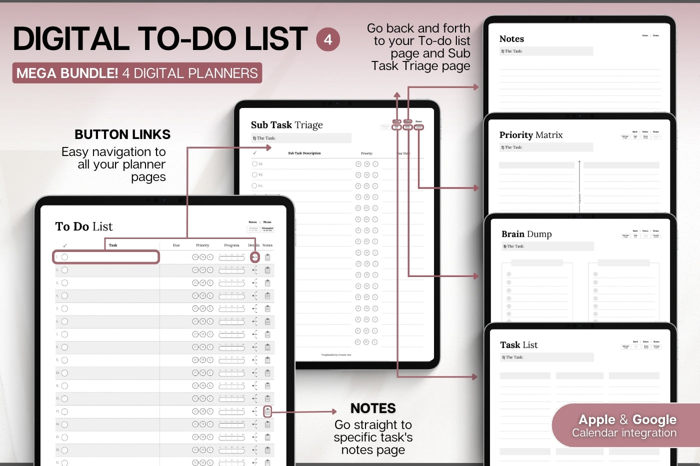 Productivity MEGA BUNDLE! 2026 Digital Planner Pack | Minimal Daily Planner, To Do List, Digital Notebook & Meeting Notes, Smart Apple Links