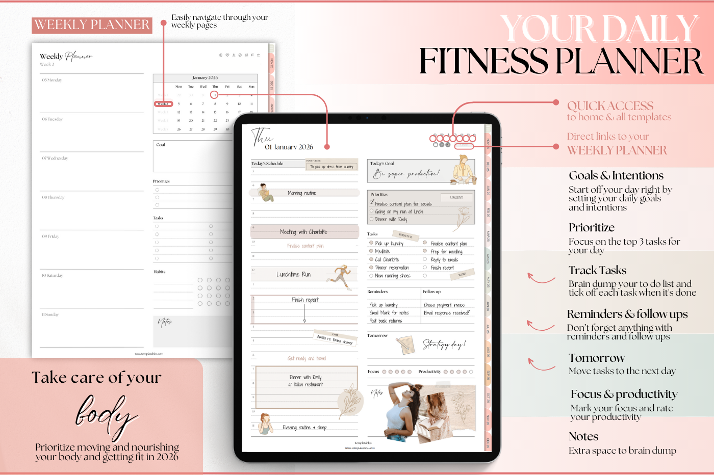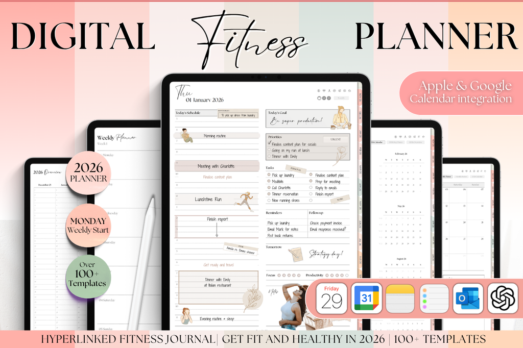 ✨ Looking for an easy way to plan and track your workout and meals? This 2026 Digital Fitness Planner includes what you need in your journey towards a healthier you, from planning your fitness routine to tracking your progress and your workouts  ✨