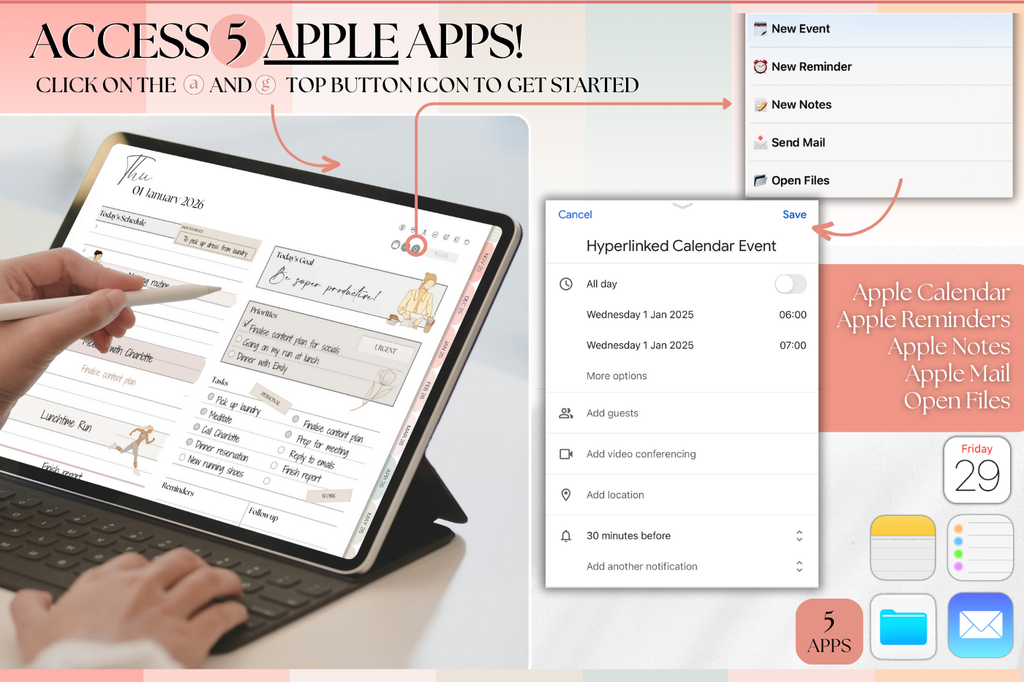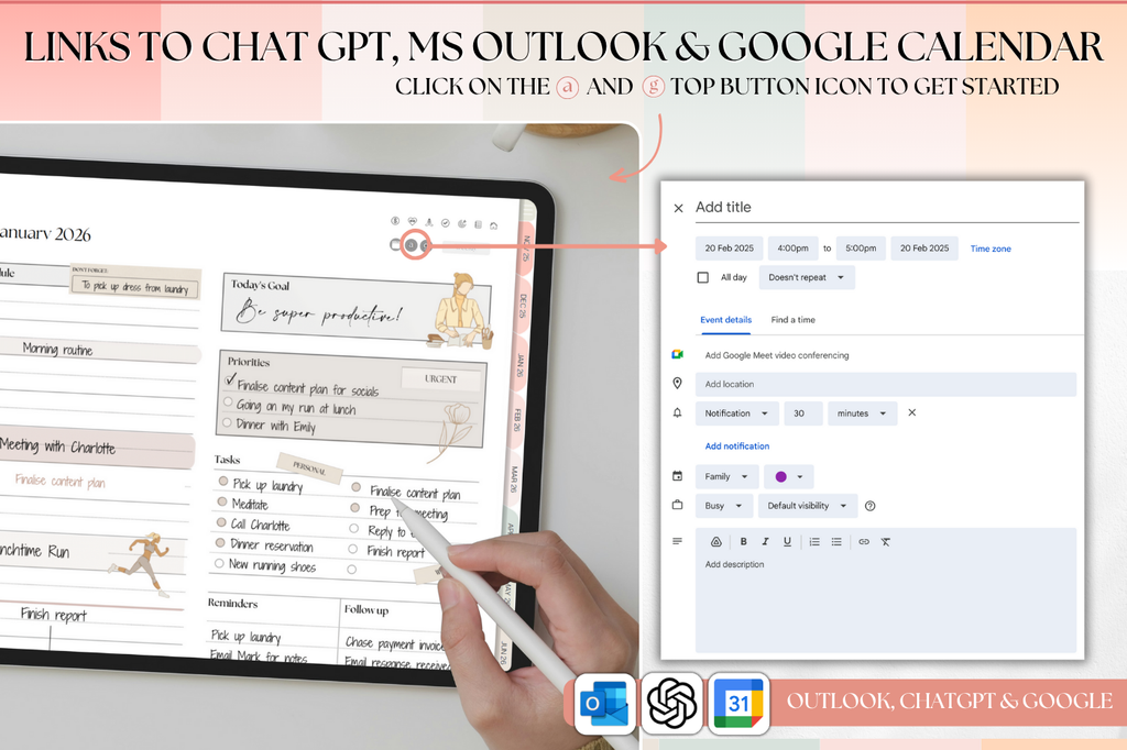 🔗 Integration with Apple & Google Calendars, Chat GPT, MS Outllok, Apple Notes, Files, Mail & Reminders