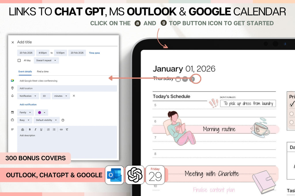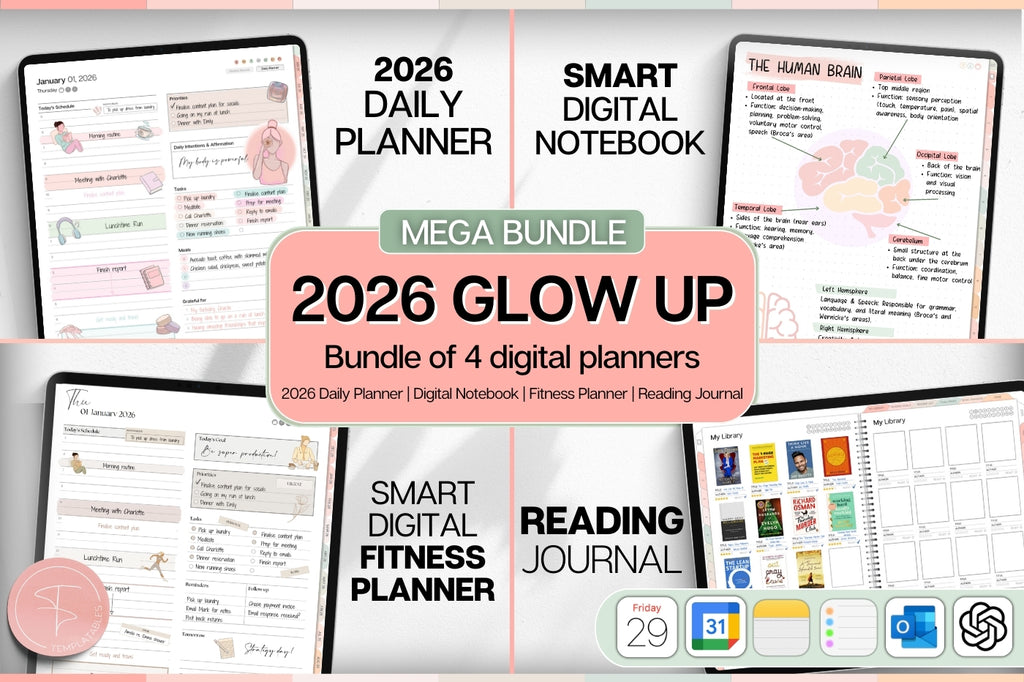 GLOW UP Mega BUNDLE! 2026 Digital Planners | Colorful Daily Planner, Digital Notebook, Fitness Planner & Reading Journal, Smart Apple Links