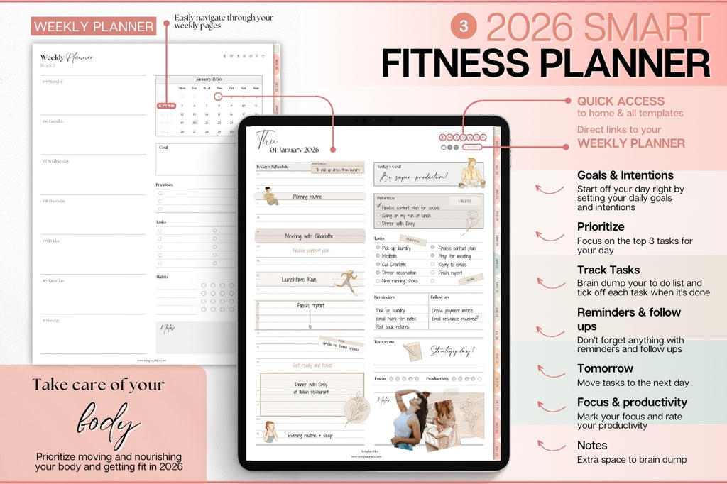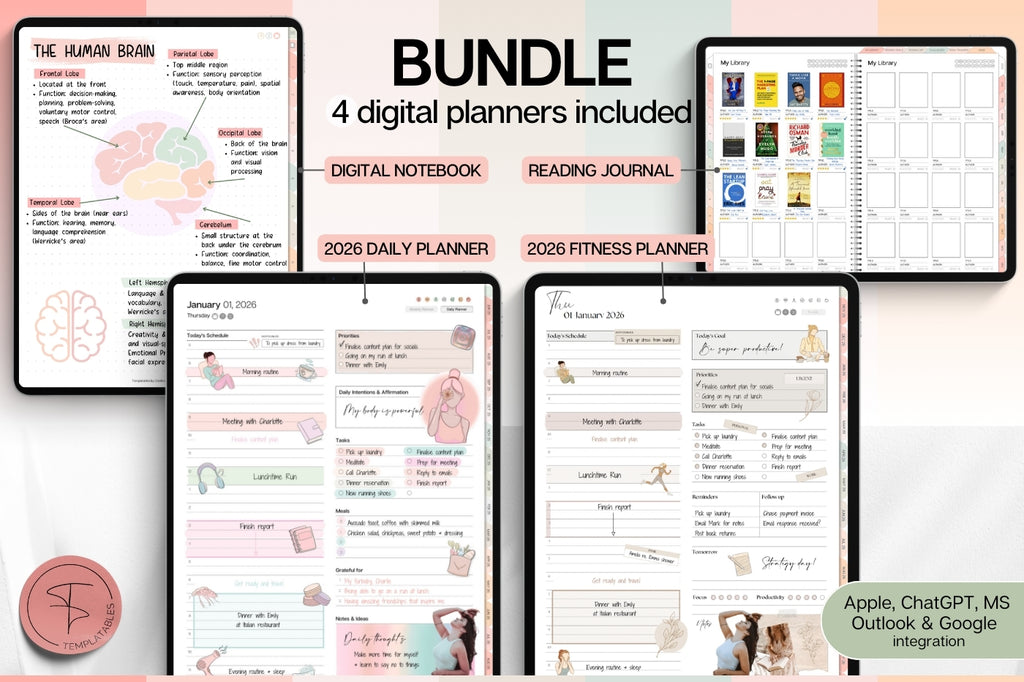 MEGA Bundle including 4️⃣ planners to glow up in 2026: Smart 2026 Planner, Smart Notebook, Fitness Planner & Reading Journal