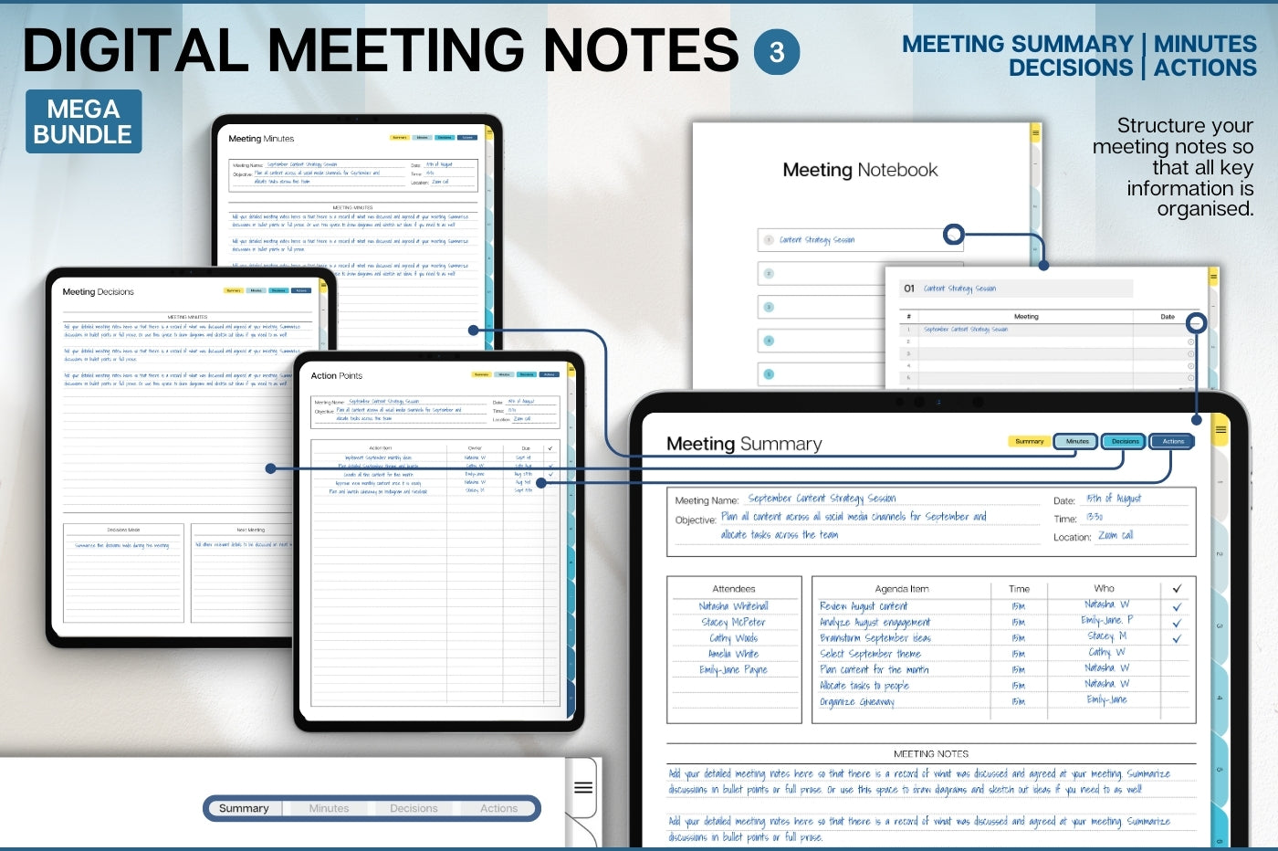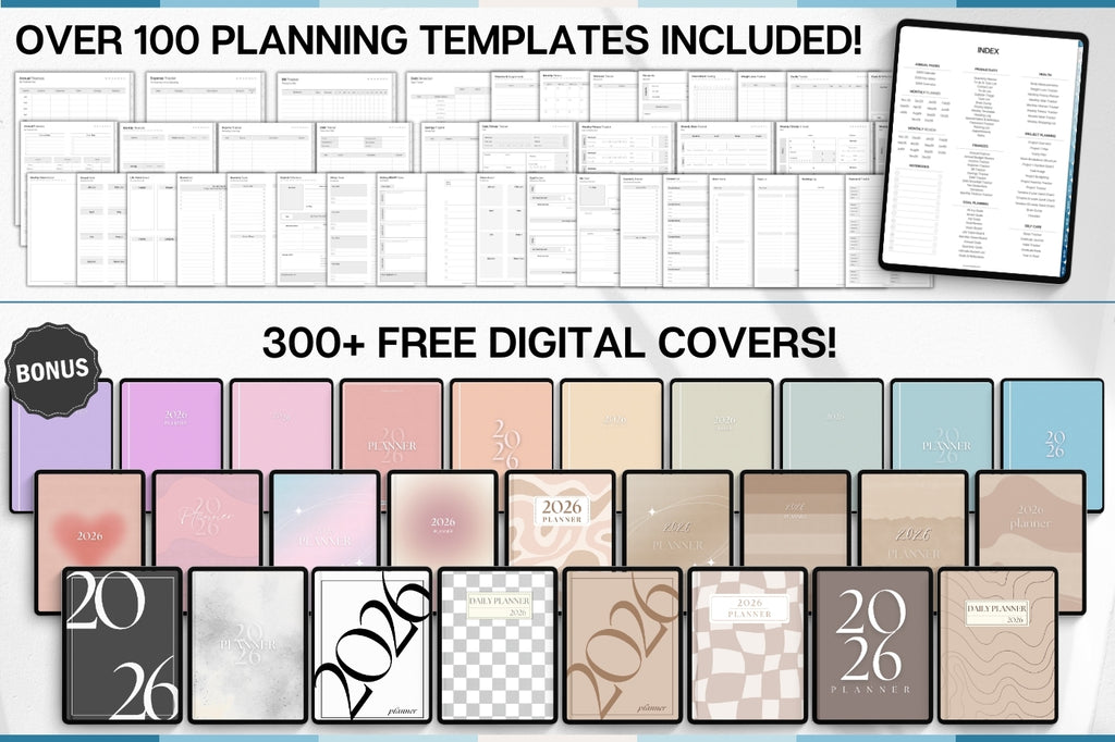 MEGA Bundle including 4️⃣ digital planners in one pack: Smart 2026 Planner, Smart Notebook, Project Planner & Meeting Notes