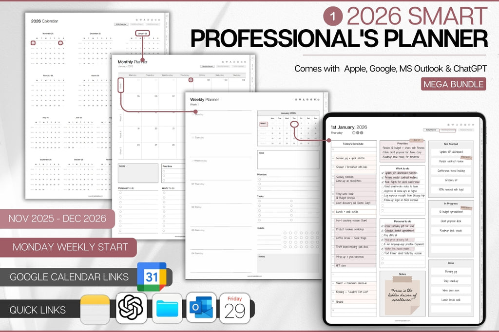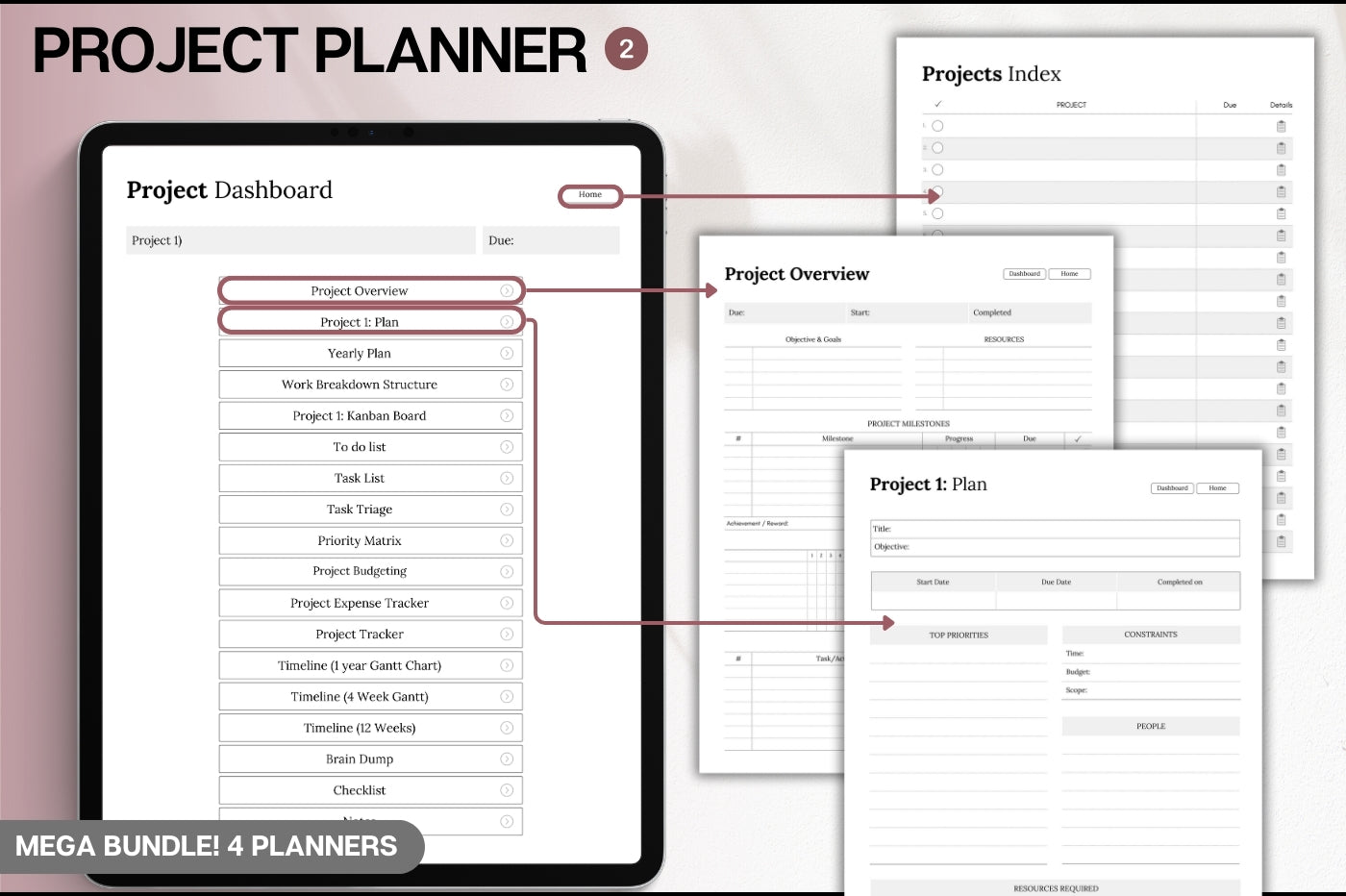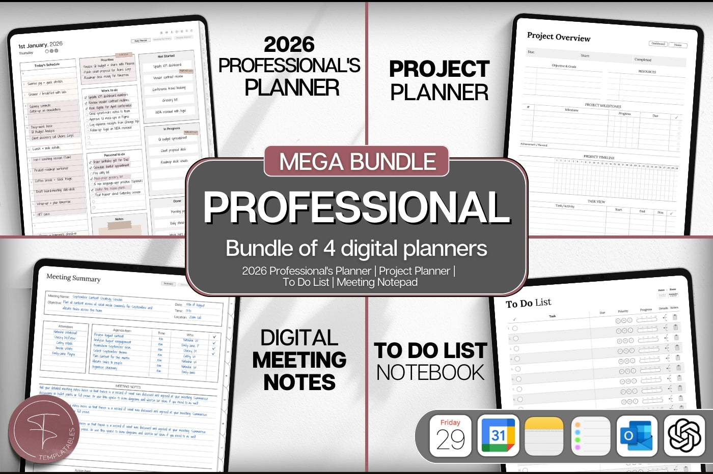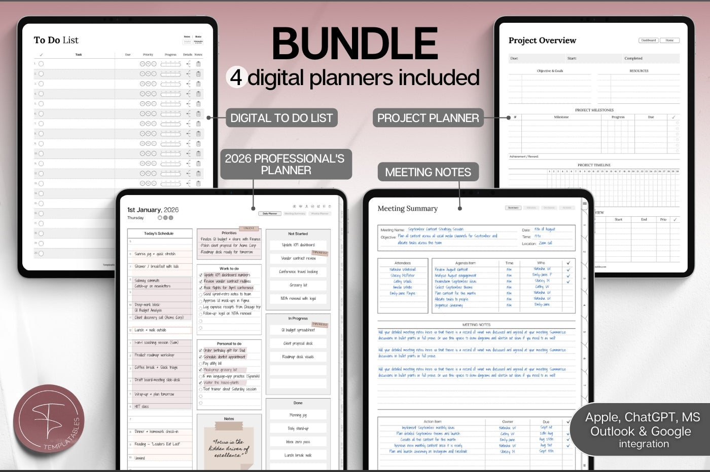 MEGA Bundle including 4️⃣ digital planners in one pack: Smart 2026 Planner, Smart Notebook, Project Planner & Meeting Notes